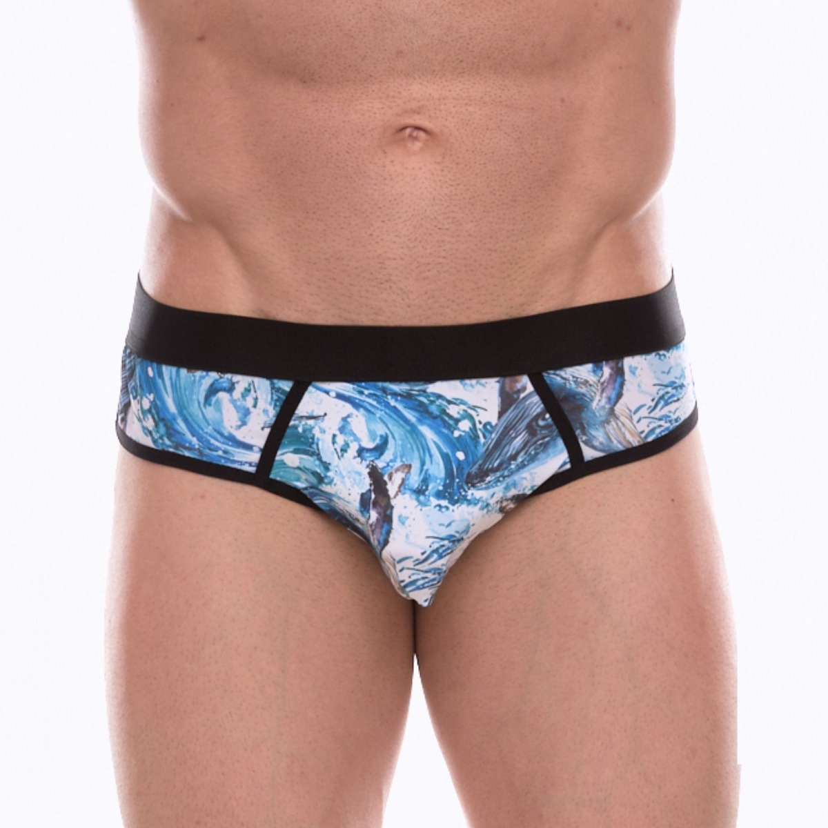 Мужские трусы-джоки с принтом в виде волн и китов.Характеристики