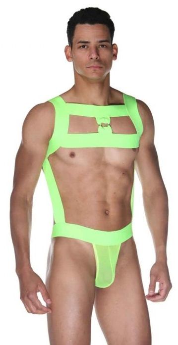 Боди для мужчин. Боди на широких лямках, с переплетениями на лопатках и груди.