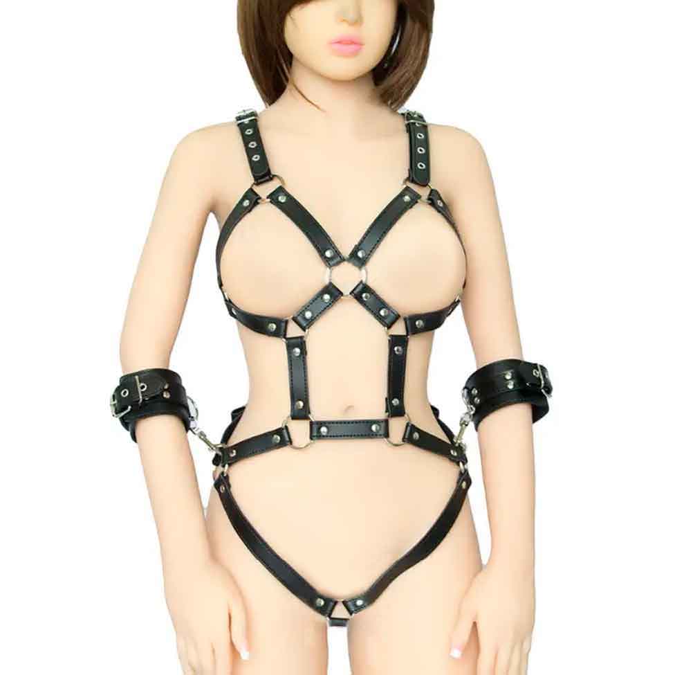 Стильная портупея на тело с пристегивающимися наручниками.