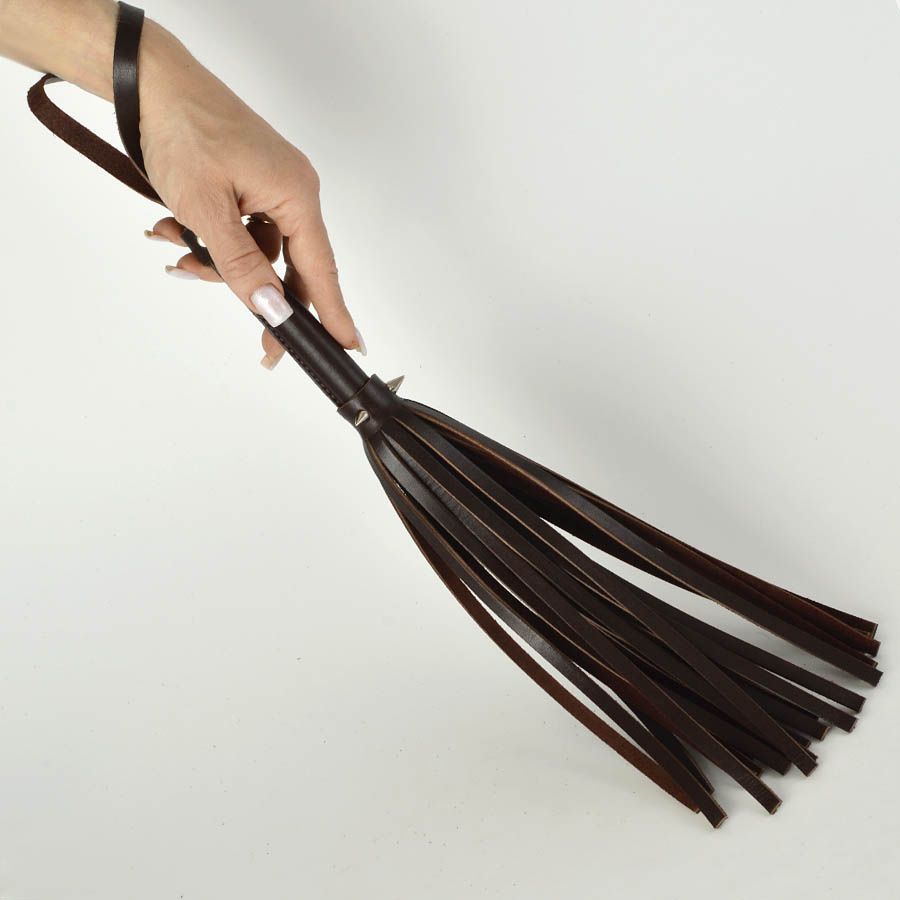 Плеть изготовлена из натуральной коричневой кожи и украшена тремя металлическими шипами. Длина шипов - 1 см.