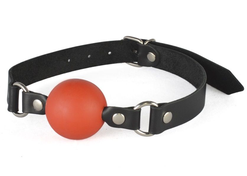 Ремешки кляпа изготовлены из натуральной кожи черного цвета. Кляп регулируется при помощи пряжки. Сфера выполнена из TPE.