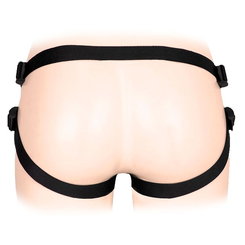 Женский пояс-трусики с отверстием для коннектора. Применяется в качестве страпона. К изделию прилагаются: коннектор и насадка в виде пениса с уплотнением в зоне головки. Интимный аксессуар имеет мягкую внутреннюю поверхность, предотвращающую натирание кожи. Благодаря наличию регулируемых ремней, пояс может использоваться людьми с различными параметрами. В комплекте: трусики, коннектор, насадка.